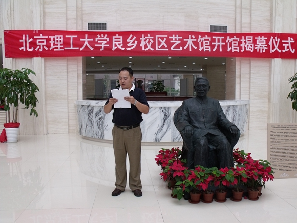 揭幕仪式由设计与艺术学院副书记副院长丛磊老师主持。首先由设计与艺术学院副院长徐其敏对良乡校区艺术馆的筹建情况进行了介绍,随后由李和章校长和姚利民主任为艺术馆揭幕。