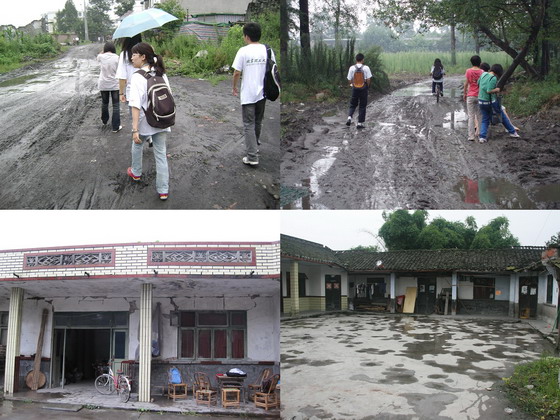 7月26日起,由于连日大雨和大型施工车辆频繁往来,造成聚源镇及其附近村庄道路损坏严重,部分学生参与支教辅导十分困难,我支教团经实地考察,计划未来几天进入周边偏远村庄的学生家中进行分组辅导。
