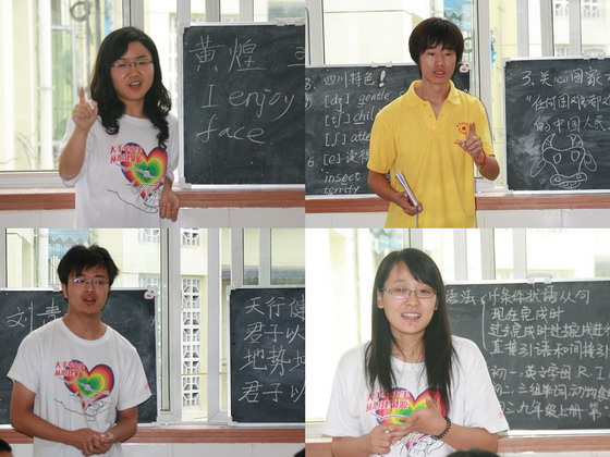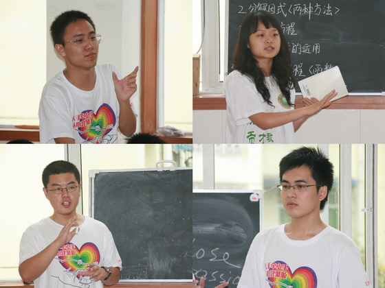 校研究生会副主席、支教团团长田春来首先简要总结了支教团工作情况,由于火车晚点耽误了行程,原本计划半个月的支教活动实际进行了十天。截至30日晚,累计教授学生820余人次,共计320余课时,其中有两天时间到较远的学生家中进行了一对一辅导。大家克服了气候炎热,交通不便等各种困难,坚持不懈,各尽其职,高质量地完成了支教工作。支教团受到当地学生、家长和聚源中学老师的好评。接着,每一位团员对本次支教活动做了简短的总结。