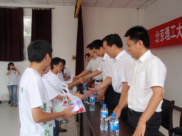 与会领导老师还向实践团团员赠送了校团委为同学们准备的慰问品。