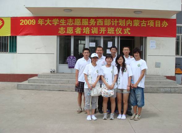 7月28~29日,我们来到了位于大青山上的内蒙古团校,在这里,2009年支援内蒙的西部计划志愿者正进行着为期五天的志愿培训。也正是在这里,我们见到了我们学校今年参加西部计划的学长们。热情的学长和我们分享了选择西部计划的初衷以及自己未来的人生规划,交谈中我们处处都能感受到那份热血青春里所洋溢出来的激情与抱负。其中尤为印象深刻的是毕业于材料学院的硕士——丁伟学长,作为一名热门专业的硕士毕业生,学长本身有很多的选择,其中还不乏高薪诱人的工作。但学长却毅然不过全家人的反对选择西部计划,选择志愿西部,只因为他想乘着自己年轻时多体验人生,在西部这片热土上挥洒自己青春的汗水,实践自己的人生价值,用一段不长的时间去做一件终生难忘的事。