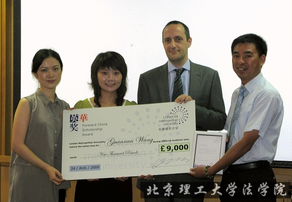 8月24日上午10点,英国伦敦城市大学2009年度“英华奖”全额奖学金颁奖典礼在北京英国使馆文化教育处隆重召开。“英华奖——中国学生全额奖学金”是英国伦敦城市大学专门针对中国学生的一项奖学金,奖金数额将会覆盖获奖学生在英国攻读硕士学位期间的全部学费。我校法学院09届毕业生王冠楠同学喜获该奖项,赴伦敦城市大学法学院国际商法专业录取。