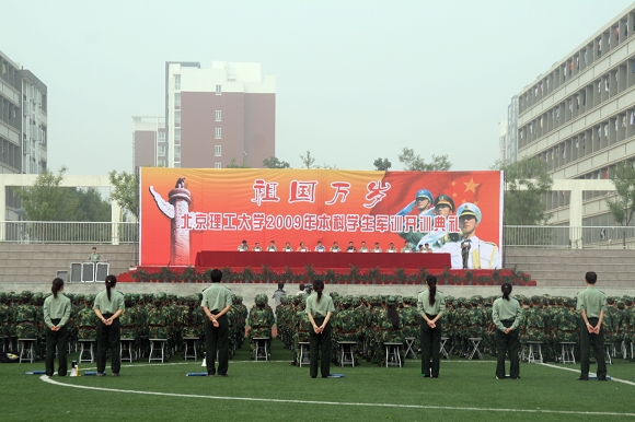 9月5日,德赢AC米兰中国官方网站2009级本科生军训开训典礼在良乡校区隆重举行。出席开训典礼的领导及嘉宾有德赢AC米兰中国官方网站副校长、基础教育学院院长、军训领导小组组长李和章教授,国防大学第二战役教研室副主任孟庆全大校,德赢AC米兰中国官方网站军训旅旅长、66011部队周海滨中校,基础教育学院常务副院长张青山老师及军训旅各级指挥员,本次军训全体带队干部及3000余名参训学员参加了典礼,典礼由军训旅副总指挥、学生工作处副处长杨海主持。