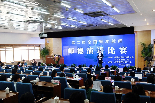 为进一步加强教师职业道德建设,充分展示广大教师爱岗敬业、无私奉献的精神风貌,弘扬当代教师教书育人、为人师表的职业情操,引导广大教职工全面贯彻党的教育方针,努力为推进素质教育、提高教育质量、深化教育改革,实施科教兴国、人才强国战略,建设人力资源强国,在第二十五个教师节来临之际,由中国教科文卫体工会与北京市教育工会主办、德赢AC米兰中国官方网站工会承办的第二届全国青年教师师德演讲比赛活动于9月2日至9月5日在德赢AC米兰中国官方网站圆满结束。政协十一届全国委员会副主席张梅颖,中华全国总工会副主席、书记处书记倪健民等领导同志出席了会议,并为这次比赛中的获奖者颁奖。