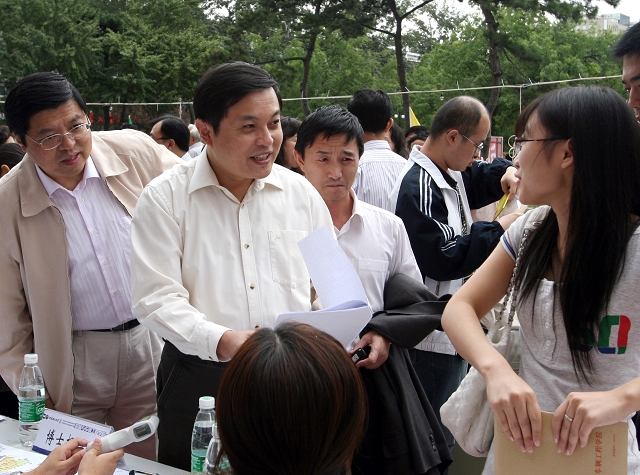 九月的北京,秋高气爽。今天是我校2009级研究生新生入学报到的日子。中关村校区校园里处处洋溢着喜庆的氛围,老师同学每个人的脸上都挂着热情的微笑。党委书记郭大成、校长胡海岩、副书记侯光明、副校长孙逢春、赵显利、李和章等校领导亲临现场,亲切看望了新生及迎新工作人员,同他们亲切交谈,并寄语新同学“步入北理工,开启新起点,播种新理想,放飞新希望,再创新辉煌”。