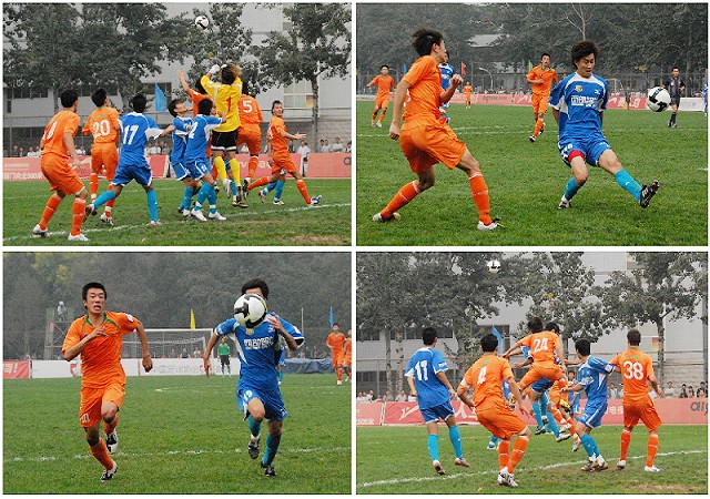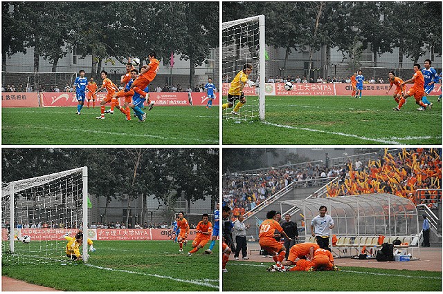 赛前两队分列积分榜后三位,理工只领先川足4分,这是一场谁也输不起的比赛,本场比赛的上座率也因此而较为可观,学校还组织了大批良乡新生前来助阵,比赛就这样在“理工必胜,理工必胜”的强有力助威口号中展开了激烈的争夺。