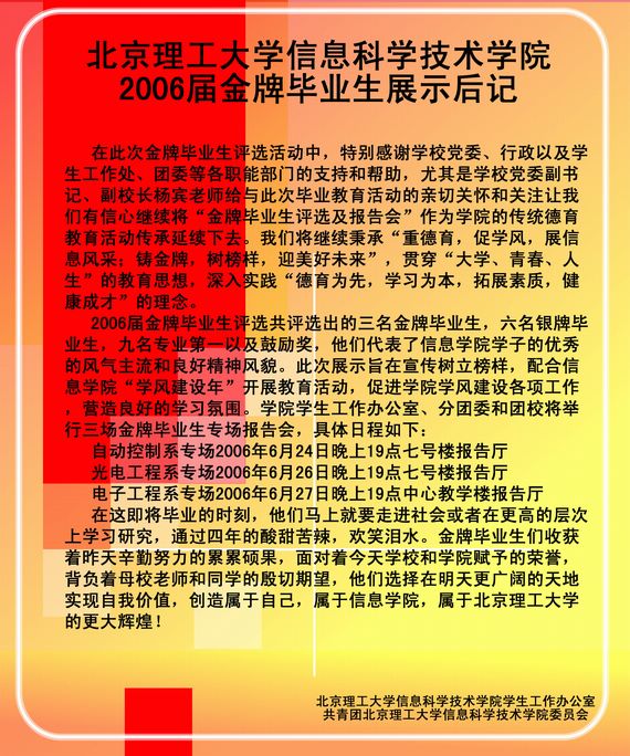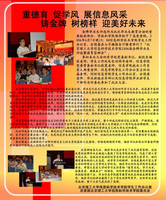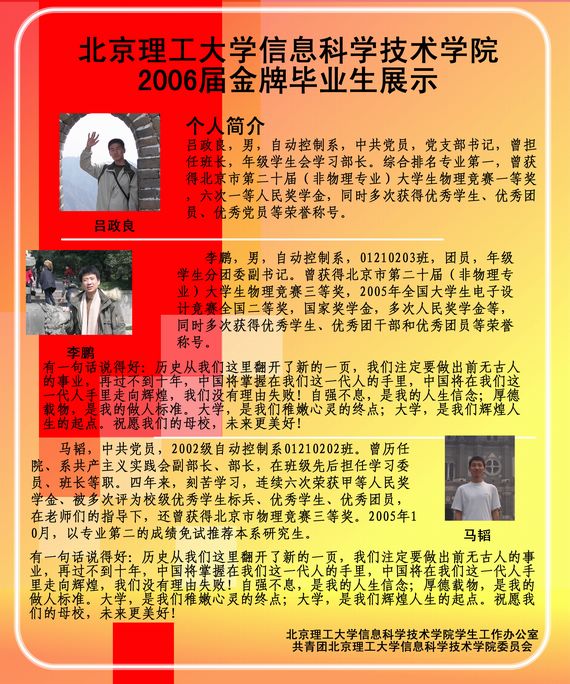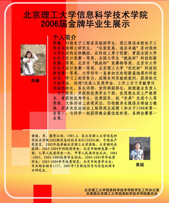 【图】信息科学技术学院2006届“金牌毕业生”系列展示