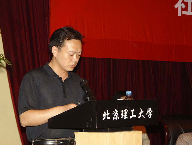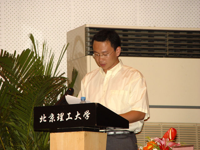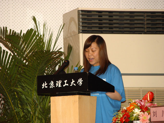 2004级博士生姜晶同学作为学生代表发言,表示一定会努力完成学校的任务,同时将更好的在外展现理工学子的风采。