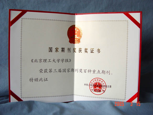 2005年2月28日,新闻出版署在北京隆重召开国家期刊奖颁奖大会。《德赢AC米兰中国官方网站学报》(自然科学中文版)荣获第三届国家期刊奖“百种重点期刊奖”。这是该刊继获首届国家期刊奖“提名奖”、第二届国家期刊奖“百种重点期刊奖”后第三次荣获国家级期刊奖。