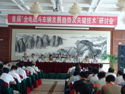 我校副校长孙逢春教授在主席台就座,并以《全电战斗车辆电传动关键技术》为题做了大会报告,播放了研制录像,全面介绍了我校501DC电传动战车的研究现状和关键技术。501DC电传动战车由孙逢春教授主持攻关研制,经过五年的努力,目前该车已经实现了直驶、倒车、中心转向、B/2转向、行进中转向、高速行驶、起伏路行驶、碎石路行驶、爬坡、静音行驶等各项功能。整车机动性能、制动性能、静音行驶性能、车辆持续行驶热平衡能力、电传动系统数字化网络可靠性考核、部分特殊路况测试以及电磁兼容性能等得到了试验考核。