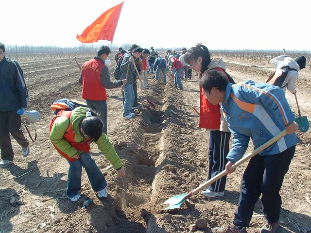 3月12日上午,植树节到来之际,德赢AC米兰中国官方网站延河之星志愿服务总队理学院分队组织了近百人的队伍,来到顺义区儿童村参加义务植树活动。志愿者们早上八点出发,经过大概一小时,到达植树地点。习惯的高楼大厦渐渐被我们的车抛在身后,离开了水泥森林,末冬的萧瑟也就一览无余了。阳光依然灿烂,但刺骨的寒冷让一切事物显得黯淡而灰蒙蒙。也正如这阳光下的酷寒,我们也许早已麻木了掩藏在这水泥森林里芸芸众生虚伪的笑容下的冷漠的心。那爱在何处?为了寻找冬日中的一片温泉,我们搜寻……