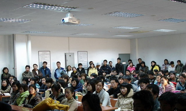 16日早上8点,报告的时间还未到,信息楼五层的报告厅已坐满了来自设计艺术学院的师生,晚来的同学只能站在教室的后面。同学们热切期待着聆听设计专家的讲座。