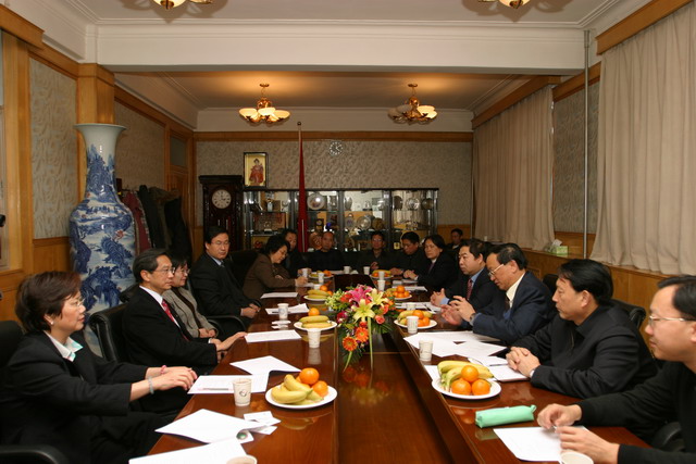 12月16日下午,我校校长匡镜明教授、常务副校长李志祥教授、副校长杨树兴教授亲切会见了来访的香港理工大学校长潘宗光教授及校长助理苏邵丽媚女士等一行六人。