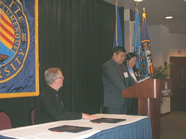 十二月中,我校代表团在校党委书记焦文俊教授的带领下访问了美国的玛凯大学(Marquette University)和罗斯福大学(Roosevelt University),并与两校签订了校际合作备忘录。