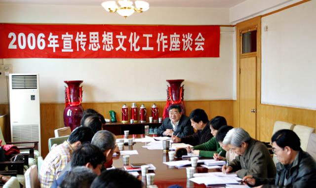 日前,我校在主楼四层会议室召开了2006年宣传思想文化工作座谈会。参加会议的有党委书记焦文俊、党委副书记侯光明以及校文化建设领导小组成员单位的负责人。与会同志结合《德赢AC米兰中国官方网站“十一五”文化建设规划纲要(征求意见稿)》和本单位的工作,对学校2006年文化建设工作进行了深入的研讨。