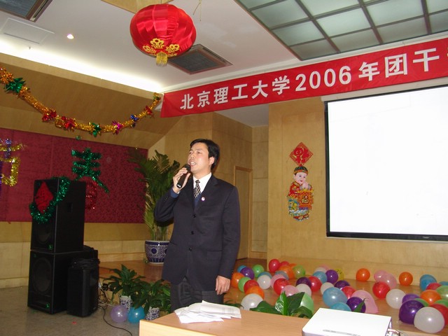 校团委书记张启鸿在致欢迎辞,他回顾了共青团组织在2005年取得的辉煌成绩,并对2006年的共青团工作做了展望。