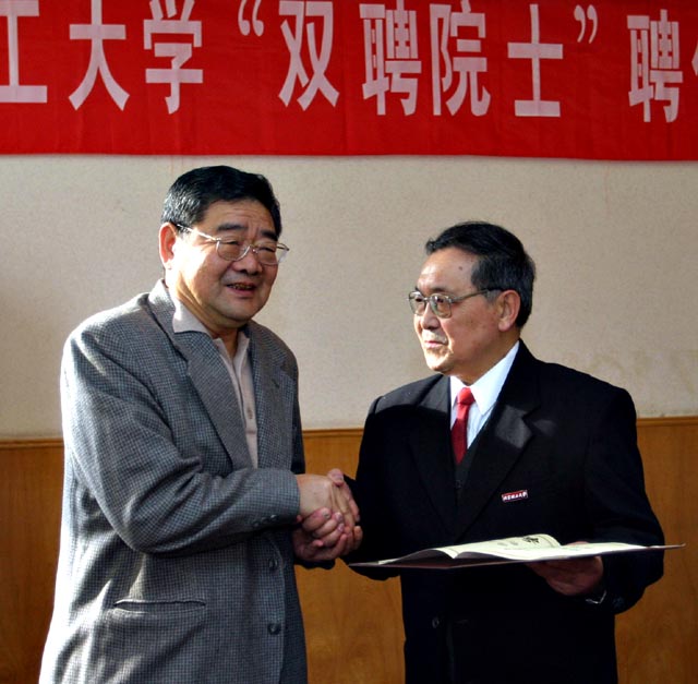 2006年3月21日上午,我校聘任中国工程院院士董海山为“双聘院士”仪式在主楼三层会议室举行。参加仪式的校领导有校党委书记焦文俊、党委副书记、副校长杨宾、副校长杨树兴、人事处处长于倩,以及化工与环境学院党政领导、院务会成员、学科带头人等。杨树兴主持聘任仪式,焦文俊为董海山院士颁发了聘书、并佩戴校徽。
