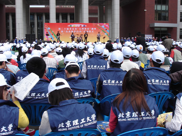 5月1日,我校100名志愿者及校级社团酷爱轮滑俱乐部、爱车协会参加共青团北京市委在人民大学明德广场举行的第二十届“五四”奖章颁奖暨“青春微笑行动”启动仪式。我校爱车协会在科技创新展区展示了爱车协会收藏和改装的车模,共青团中央书记处书记、全国青联副主席尔肯江•吐拉洪、北京市教育工委书记朱善璐同志及团市委领导对我校学生的展示表示出了浓厚的兴趣,并希望我校的社团积极发挥创造力,在课外科技方面多做一些实践和创新。