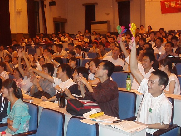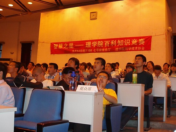 4月15日,初赛在中教举行。经过三个小时的激烈角逐,每位参赛同学都展示出的我理学院莘莘学子,特有的智慧、冷静与胆略。在他们之中,十一同学脱颖而出。除总分前四名晋级决赛,还评出了七项单科第一,他们分别是:文学:05物理班路睿,历史:03信息1班薛雪,地理:05力学班于韶明,体育:04化学班吕俊均,军事:04物理班廖作敏,英语与发散思维:05信息2班李松,知识休闲:05信息1班李鑫。 大浪淘尽始见金。5月14日晚,04力学班项大林,05信息2班康劲,04应用化学班卢凯,04数学1班陈作君四位晋级同学各携一名搭档,共同角逐06年度理学院智慧之星。