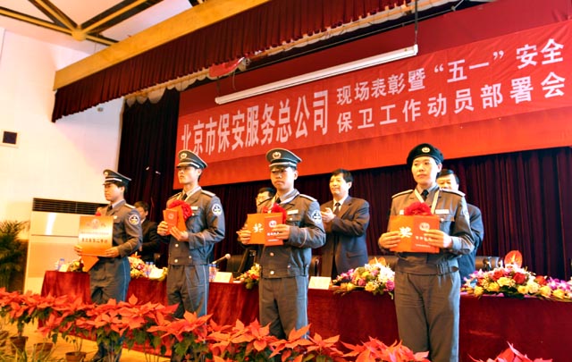 日前,北京市保安服务总公司在德赢AC米兰中国官方网站七号教学楼召开表彰大会。参加会议的有北京市公安局副局长高煜,北京市文保处处长许克嘉及书记贾鹏,德赢AC米兰中国官方网站党委副书记候光明及保卫处处长李汉军,北京市保安服务总公司总经理耿广军。北京市保安服务总公司下属的29家分公司经理及300多名保安员出席了会议。在表彰大会上,我校保卫处保安员盛环香、王军师分别被授予个人一等功和个人二等功。