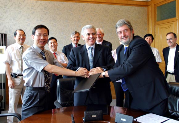 签字仪式由国际交流合作处处长王庆林主持,研究生院常务副院长吕昕、弗朗西斯洛斯副部长和马德里科技大学校长助理安赫分别在协议书上签字。仪式之后,访问团一行在杨校长的陪同下还兴致勃勃地参观了我校校园及信息科学技术学院的部分实验室。