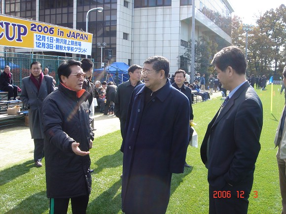 访问期间,焦书记带领代表团来到朝鲜大学校赛场观看我校足球队的比赛,为参赛队员们加油鼓劲。