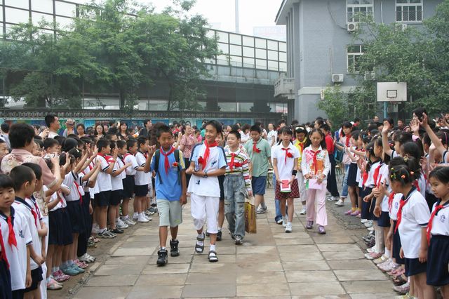 最后,《毕业歌》深情的乐曲声缓缓奏响,二年级的小同学为哥哥姐姐们戴上表示祝福的小红花,毕业生在全校师生的欢送下,走出了理工附小的校门,场面感人至深……
