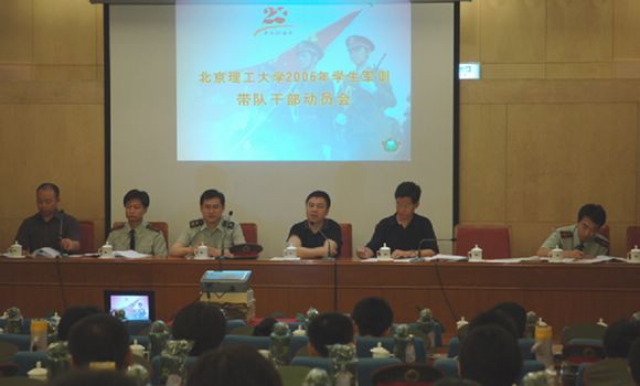首先,由党委副书记、副校长杨宾为带队干部作动员,他指出:军训是学生工作的重要内容,学校领导对此一直非常重视,今年适逢我校开展军训工作20周年,今年军训成果如何完全依靠带队干部组成的这支队伍。这就给全体带队干部提出了更高的要求,学生工作干部在军训过程中重任在肩,集中训练不但是对学生的考验,更是对带队干部的考验,希望全体带队干部发扬优良传统,严格要求自身,顺利完成好此次军训任务。杨书记要求大家在对学生管理上注意以下几点:首先军训过程中要严格要求,培养学生集体观念、锻炼意志品质。其次,在整个过程中注意安全。第三,带队干部要严于律己、在学生中起好带头作用。最后希望全体带队干部能够珍惜此次军训的机会,不辱使命,在环境变化的情况下,指挥好、管理好学生训练,创造性地开展工作,圆满完成06年的军训工作任务,向学校交出一份满意的答卷。