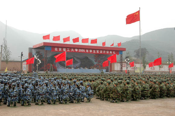 2006年9月3日上午9时,我校2006年学生军训开训典礼在八达岭学生军训基地的训练场上隆重举行。