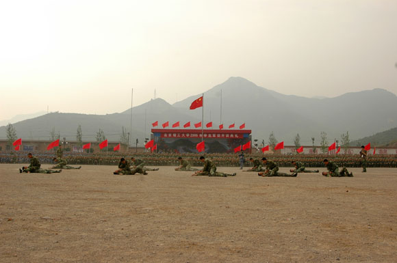 穿上帅气的迷彩服,背上整齐的背包,洋溢着激情与幻想,带着绿色的军旅之梦踏上征程,一路欢声笑语、一路歌声嘹亮——2006年9月2日,2005级参训学生共分四批进驻“八达岭学生军训基地”。军事技能训练就这样在这期待、感动、新奇中拉开帷幕。