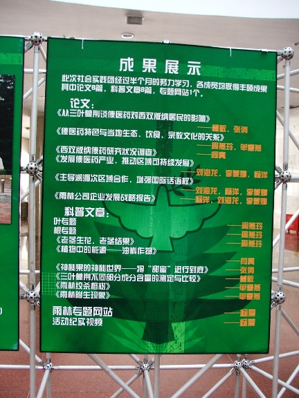本次社会实践活动,同学们不仅仅局限于社会实践活动本身,而是结合自身学科特色,返校后利用我校雄厚的科研条件,结合当地情况,对所采集的植物等标本进行了分析化验,从科学的角度解释了西双版纳地区奇特的自然资源和自然现象,通过对社会实践活动平台的充分利用,最大限度挖掘社会实践活动本身对学生全方面素质的培养,也为我校社会实践工作的开展作出了有益的尝试.