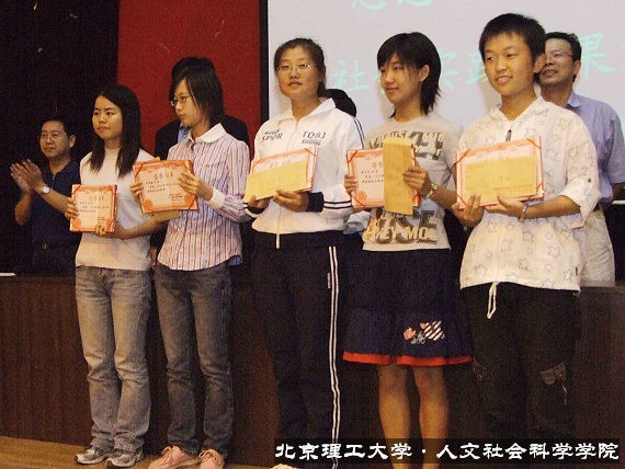 最后,人文学院院长张红峻教授宣读了评审出的结果(表格附后),并由出席本次社会实践汇报总结会的嘉宾给获奖学生颁奖。