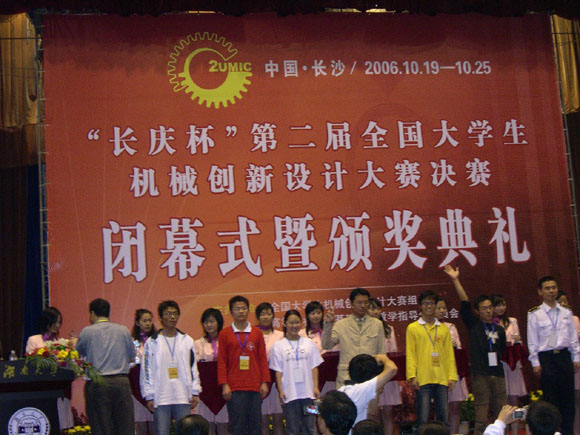 “长庆杯”第二届全国大学生机械创新设计大赛于2006 年10月19日-25日在湖南大学隆重举行,这次大赛由教育部高等教育司组建的大赛组委会和教育部高等学校机械基础课程教学指导分委员会联合主办,全国机械原理教学研究会、全国机械设计教学研究会和湖南大学承办,被列为全国高校理工科四大竞赛之一。本次大赛的主题为"健康和爱心",内容为"助残机械、康复机械、健身机械、运动训练机械"等四类机械产品的创新设计和制作。