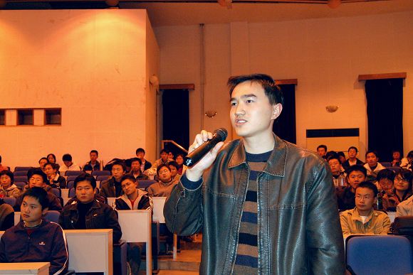 在讲座中戴大洪学长向同学们介绍了中国足球职业联赛的发展脉络。他结合自己的亲身经历讲解了职业联赛和业余联赛的区别,分析了我校足球对征战甲级联赛可能遇到的问题。他语言生动、幽默,整场讲座笑声不断、掌声连连,在场观众在非常欢乐的氛围中获得了众多有益的启示。
