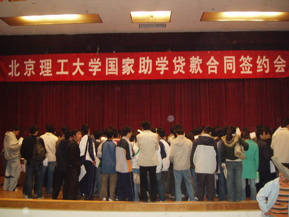 2006年11月12日,我校学生工作处与中国银行科技会展中心支行在中心楼报告厅举行了隆重的国家助学贷款签约仪式。我校又有847名学生通过了中国银行国家助学贷款的资格审核,顺利签约,合同总金额为1726.6万元。