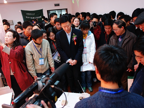 在本次科技作品竞赛现场答辩会上,我院展出了参加本次比赛的科技作品实物,得到了校领导和各部处领导的好评,也让很多前来观看的同学开阔了眼界,提高了对课外科技活动的兴趣。现场答辩会的气氛十分火爆。