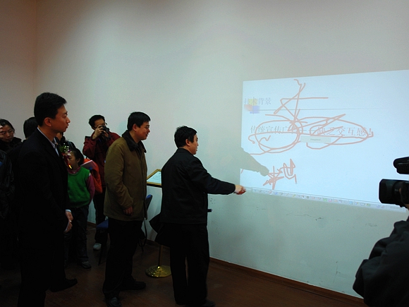 党委副书记、副校长杨宾教授在亲自体验我院参赛作品“基于激光笔的人机交互系统”。