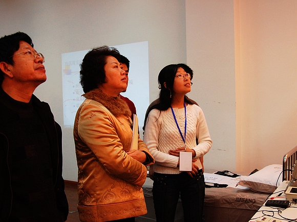 我院参赛选手为团市委沈千帆副书记、校党委杨宾副书记、赵长禄副校长等领导专家介绍作品