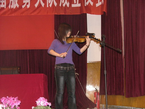 表彰大会在校艺术团成员李慧娟同学的一曲小提琴独奏《天空之城》中拉开了序幕。她以娴熟的技巧演奏出的动人旋律,把在场的观众带入了高远空旷的意境之中。