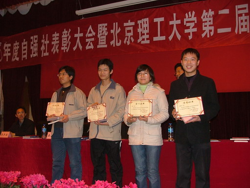 作为自强社的名誉社长,杨宾书记在大会最后发表了讲话。他肯定了一年来自强社的努力工作以及在学校贫困生工作中所起的作用。并结合几位校领导的亲身经历告诉同学们出身并不决定命运,当代大学生应有自强不息的精神。他鼓励自强社的同学们再接再厉,做好服务贫困生、服务社会的工作,同时也表示会尽可能为社团提供良好的办公设备及工作环境。