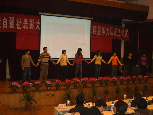 2007年1月4日晚上19:00,学生工作处主办的“2006年度自强社表彰大会暨德赢AC米兰中国官方网站第二届服务大队成立仪式”在七号楼报告厅隆重举行。