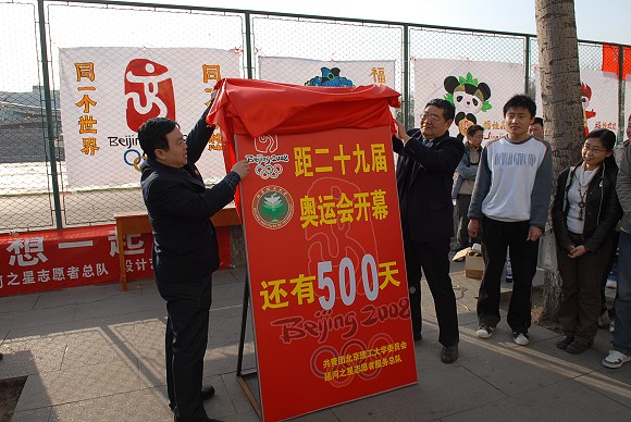 3月27日,春光明媚,距离北京2008年奥运会开幕还有500天。在这个值得纪念的日子里,德赢AC米兰中国官方网站迎奥运倒计时牌暨“我以我心迎奥运”奥运比赛项目标识图像展揭幕仪式在校园内隆重举行。