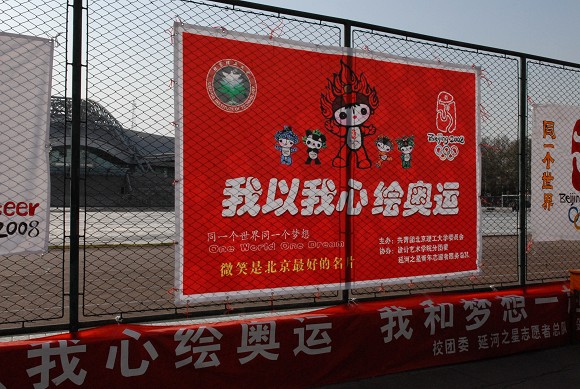 在这场由校团委、设计艺术学院分团委和校延河之星志愿者服务总队共同举办的,以奥运会比赛项目标识图像为主要内容的图像展览中,每一幅标识图像都是由奥运志愿者们亲手所绘。同学们也正是以这样一种特殊的方式来迎接奥运会的到来。