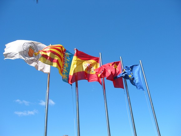 瓦伦西亚理工大学为迎接匡校长的到访升起了五星红旗