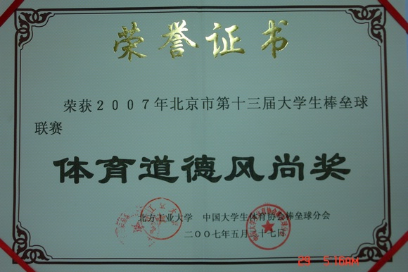 我校以极佳的意志品质和比赛作风,赢得了对手的尊重,征服了在场的所有观众。本次大赛组委会向我校颁发了“体育道德风尚奖”。王中建获得“优秀投手奖”,薛伟获得“优秀教练员奖”。