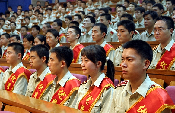 2007年6月28日,我校优秀国防生表彰暨毕业欢送会在中心教学楼报告厅举行。