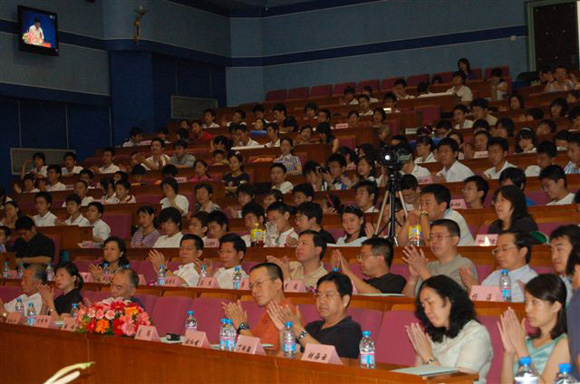 首届“理工杯”海淀区中学生迎奥运综合实践---学术、科技创意设计竞赛的开幕式于7月7日9:00在我校中教一层报告厅举行。中国工程院院士、我校著名专家毛二可教授;海淀区副区长于军、教工委副书记乔键、团区委副书记雷玉梅;我校党委副书记、副校长杨宾,副校长赵显利及党校办、科技处、研究生生院、学工处、招生就业处、保卫处、党委宣传部、团委、理学院、宇航学院、设计学院、人文学院、生命学院的领导和专家;海淀区八十一所中学的400余名师生代表出席了开幕式。