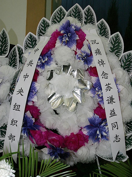 向苏谦益同志敬献花圈的单位有:中共中央组织部、国防科学技术工业委员会、北京市人民政府、全国政协办公厅、内蒙古自治区党委、内蒙古自治区人民政府、中共北京市委教育工委、北京市教委、中华全国总工会老干部局及其他有关单位等;中共德赢AC米兰中国官方网站委员会、德赢AC米兰中国官方网站及校工会、教代会、团委、学生会、研究生会等。