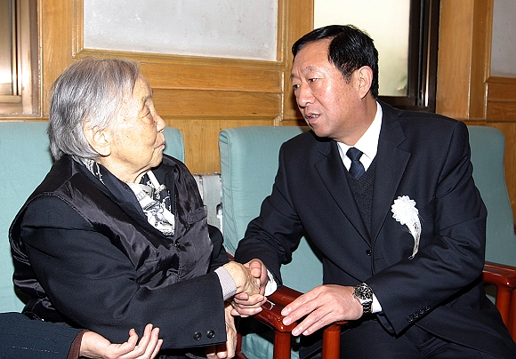 国防科工委纪检组组长郭炎炎在苏谦益同志遗体告别仪式前看望了苏谦益同志的夫人。