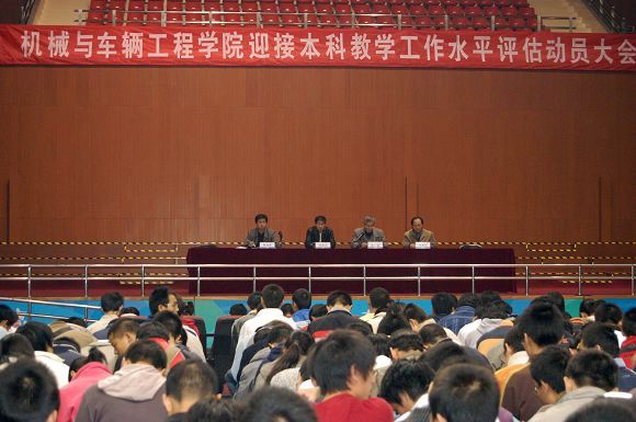 10月30日晚,机械与车辆工程学院迎接本科教学工作水平评估学生动员大会在学校综合体育馆顺利召开。学院院长项昌乐、分党委常务副书记张英、副院长丁洪生、副书记、副院长郝洪涛老师出席了本次动员会。学院中关村校区全体本科生、研究生参加了动员大会。大会由分党委副书记、副院长郝洪涛老师主持。
